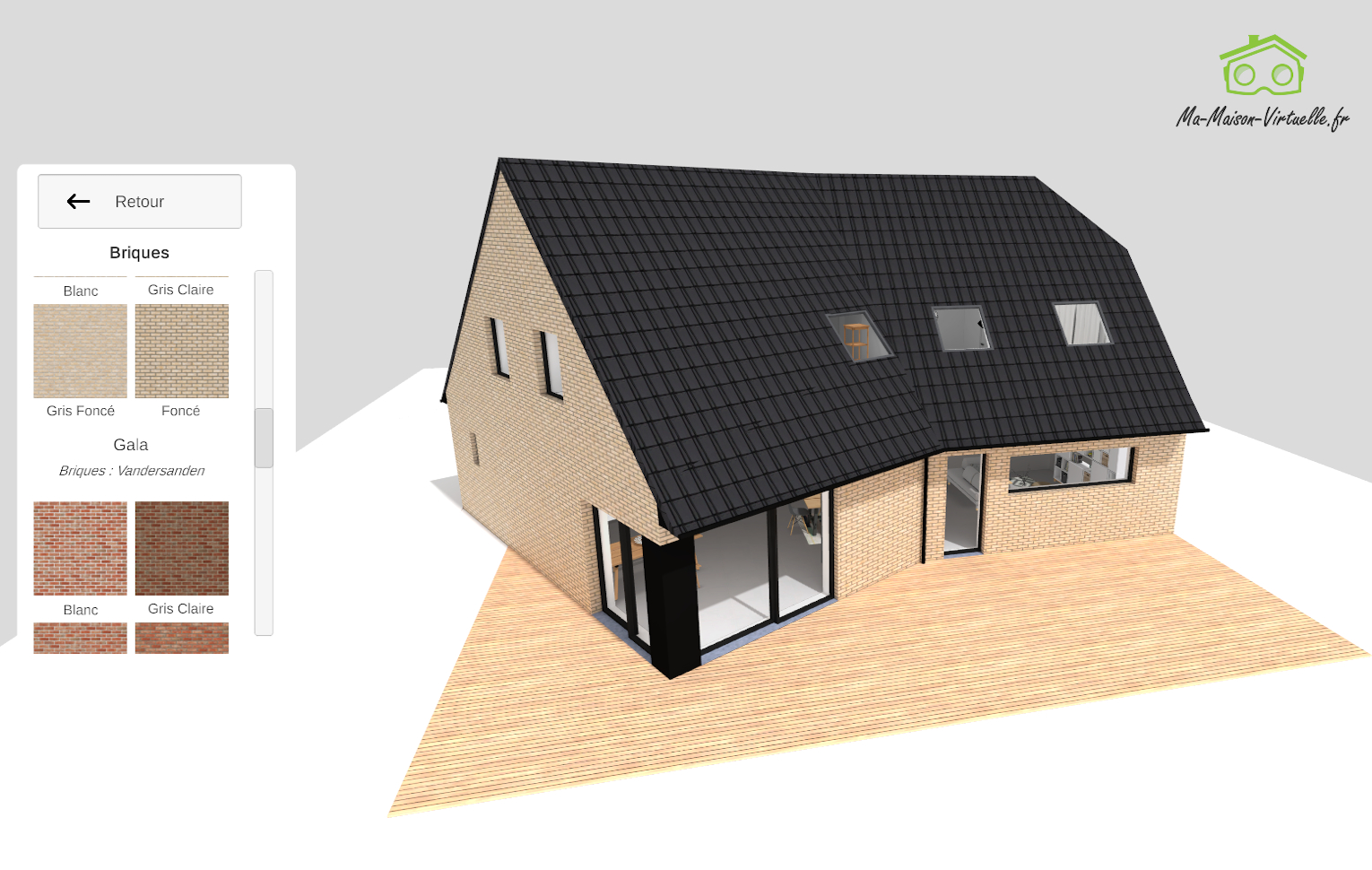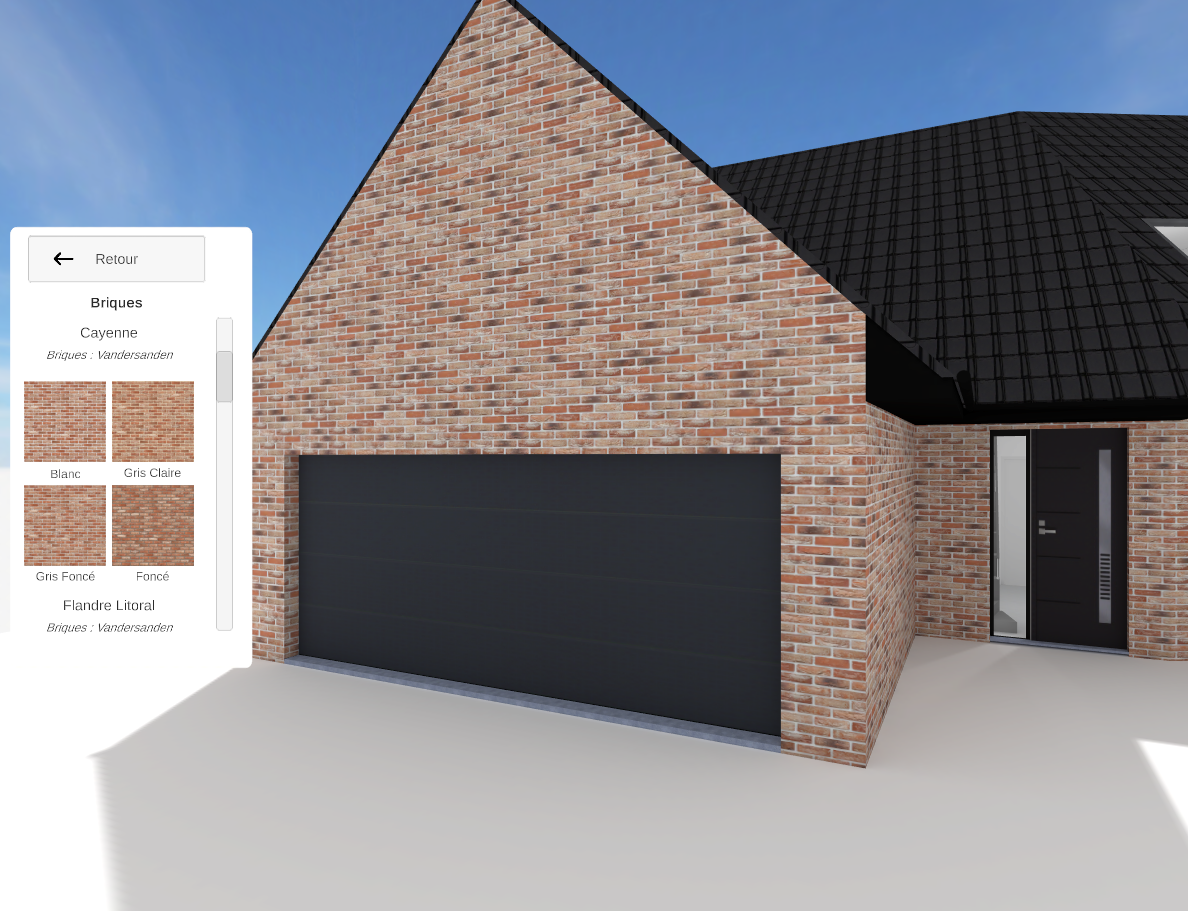 C’est pour cela que notre outil permet à votre client de choisir ses matériaux (Bibliothèque en fonction de ce que vous proposez) et de voir directement leurs impacts sur leur maison à l’échelle 1.
