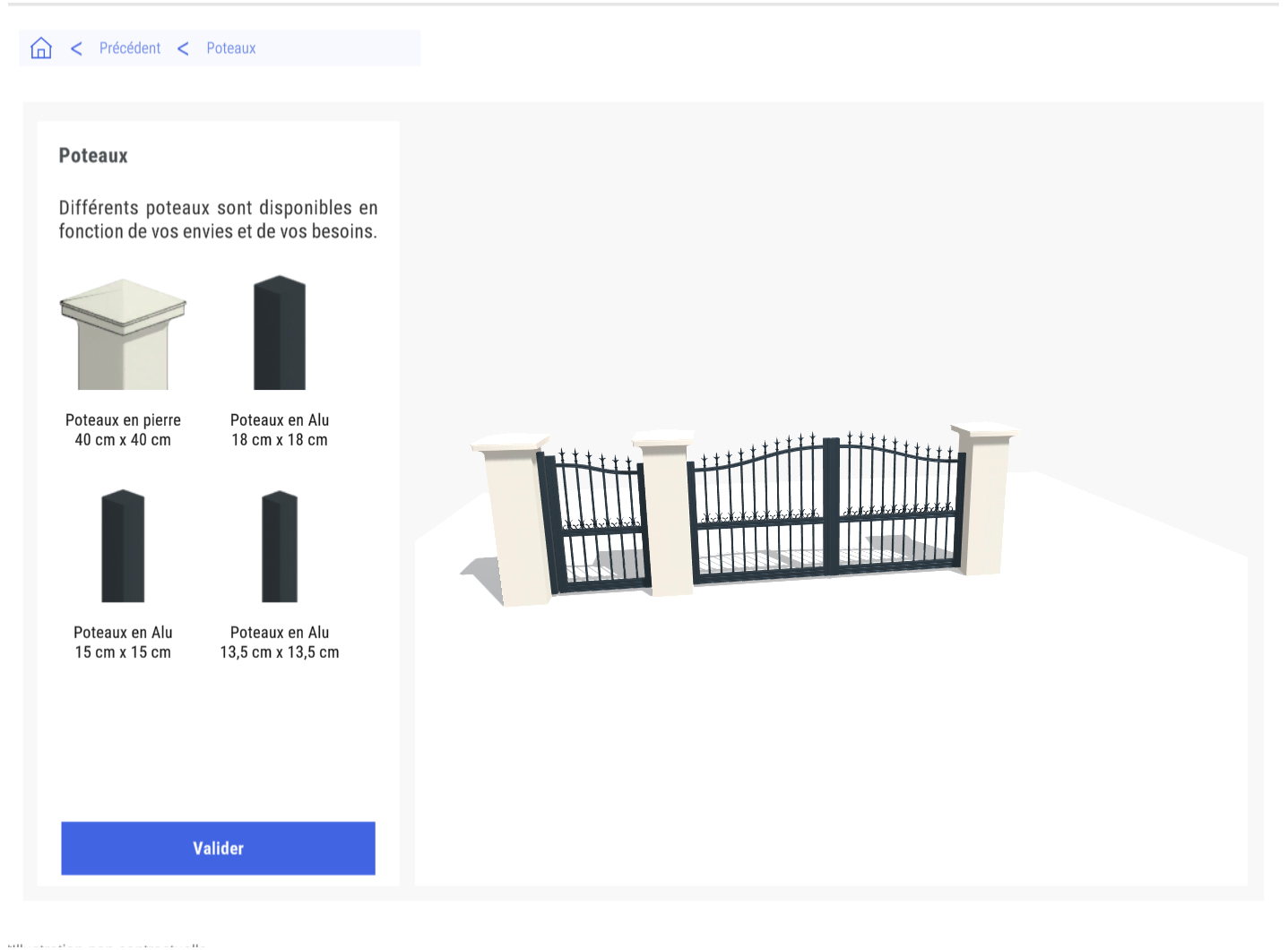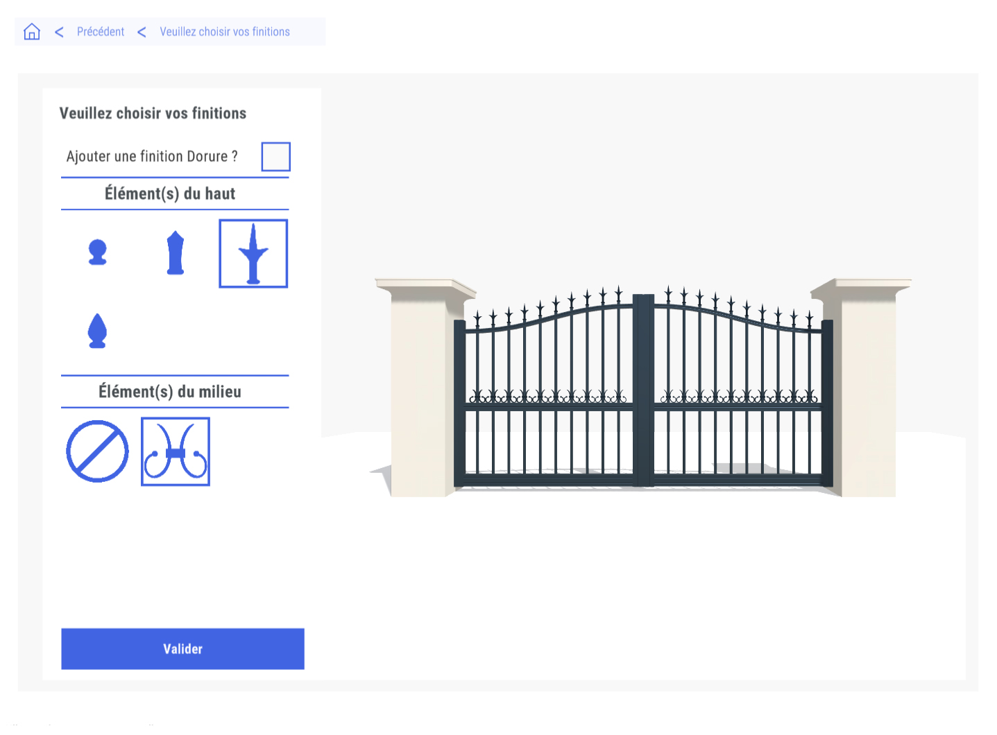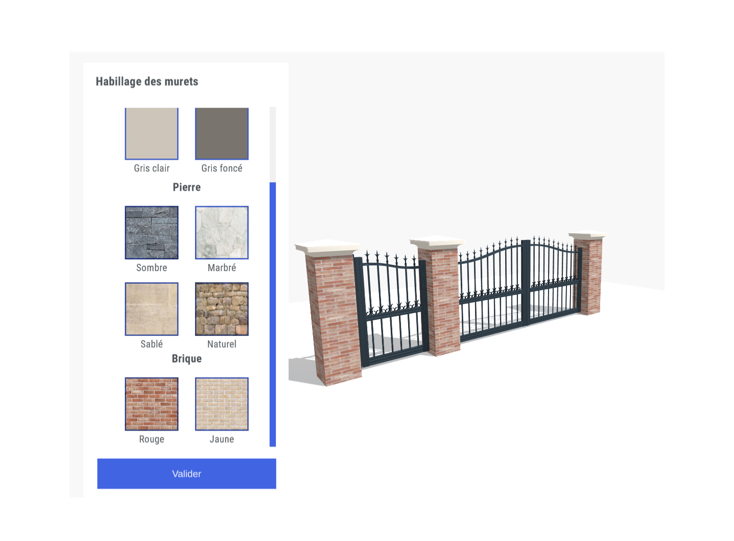 Partis d’un constant simple: aujourd’hui, leurs clients veulent pouvoir configurer, de chez-eux et simplement, un portail. Ils veulent pouvoir partager leur configuration et demander conseil à leurs amis. Mais surtout, ils veulent être rassurés en visualisant précisément ce que va donner le portail avec le visuel de la maison.