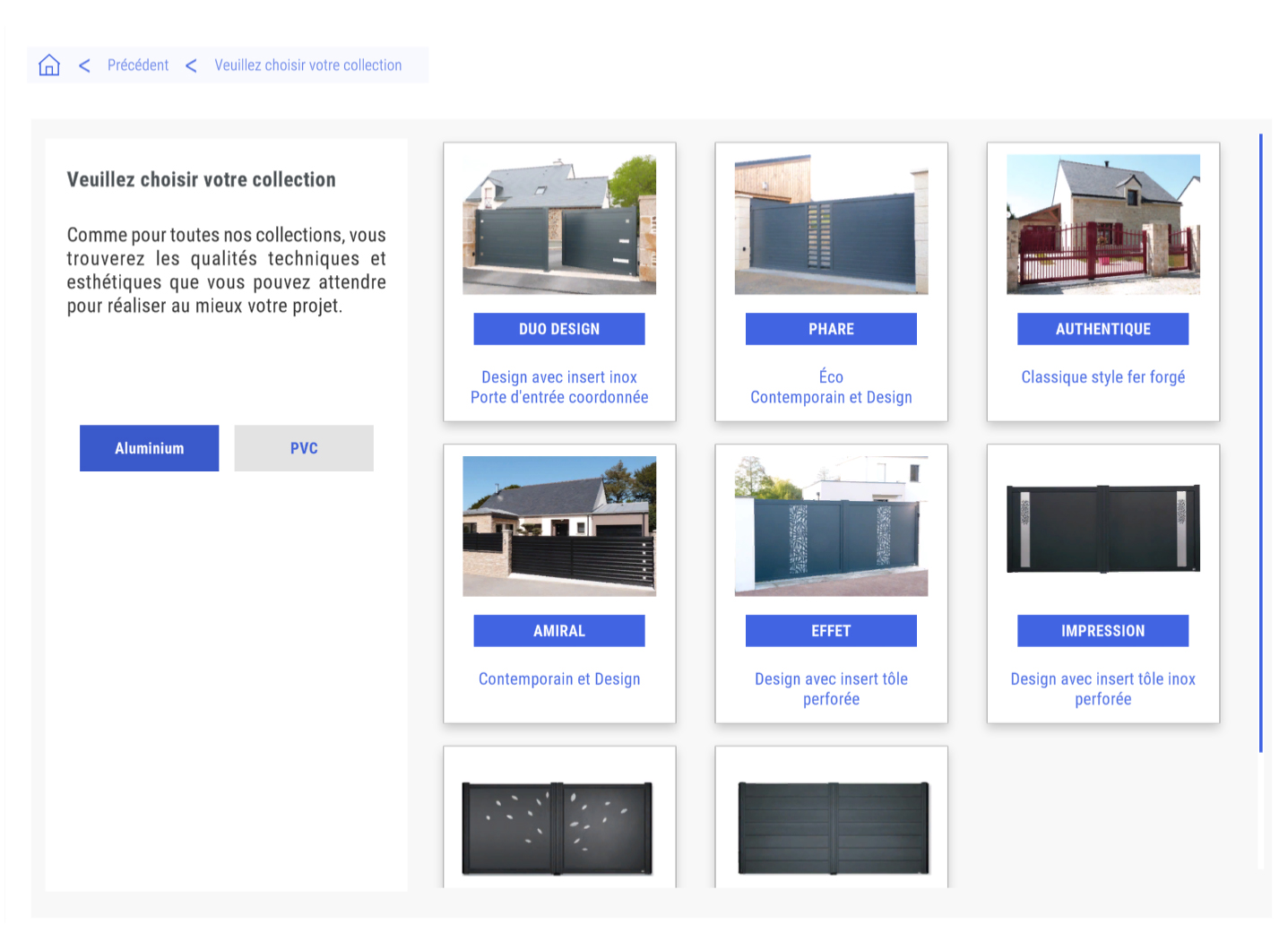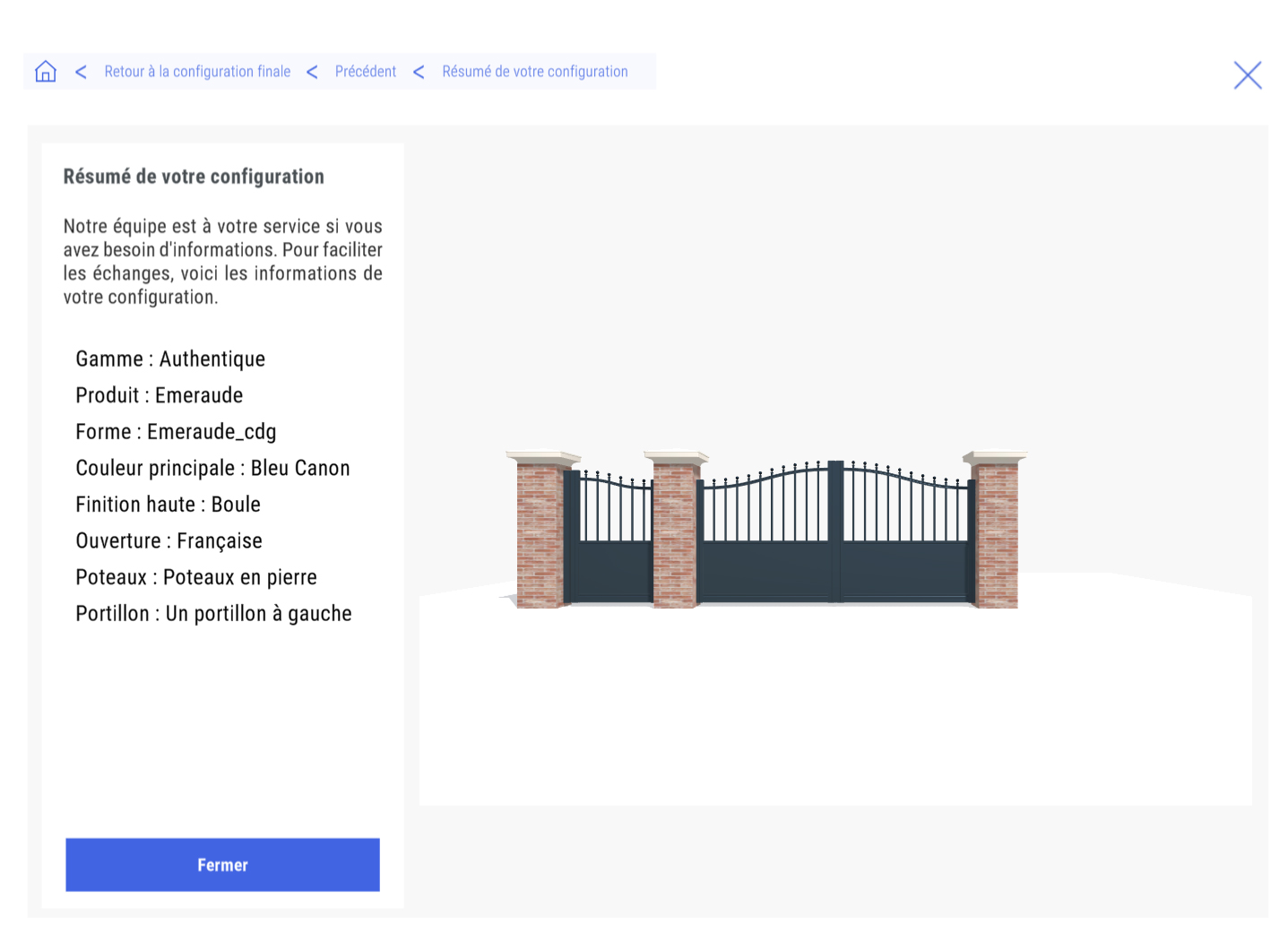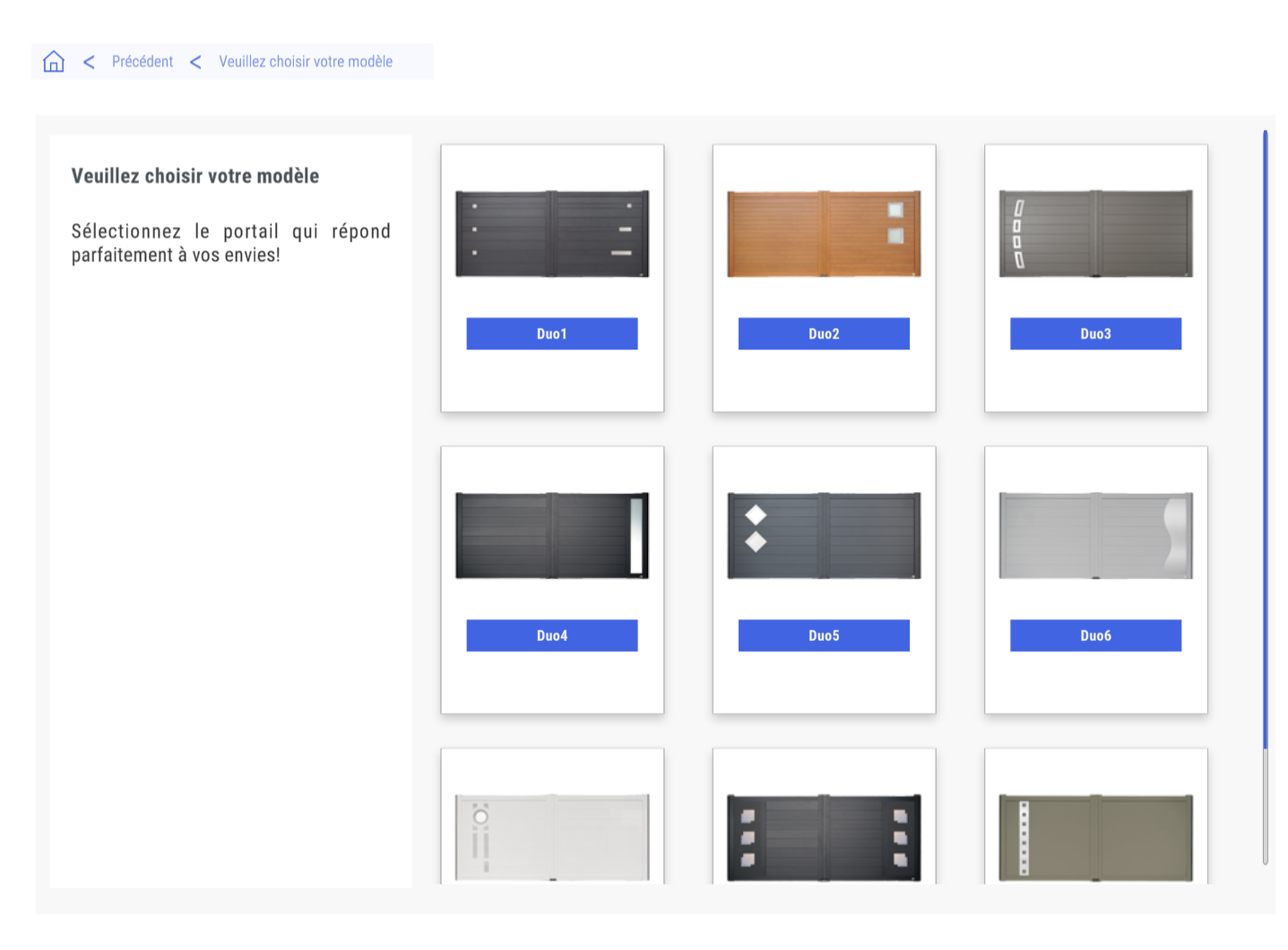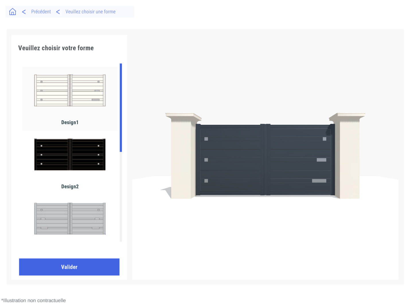 Partis d’un constant simple: aujourd’hui, leurs clients veulent pouvoir configurer, de chez-eux et simplement, un portail. Ils veulent pouvoir partager leur configuration et demander conseil à leurs amis. Mais surtout, ils veulent être rassurés en visualisant précisément ce que va donner le portail avec le visuel de la maison.