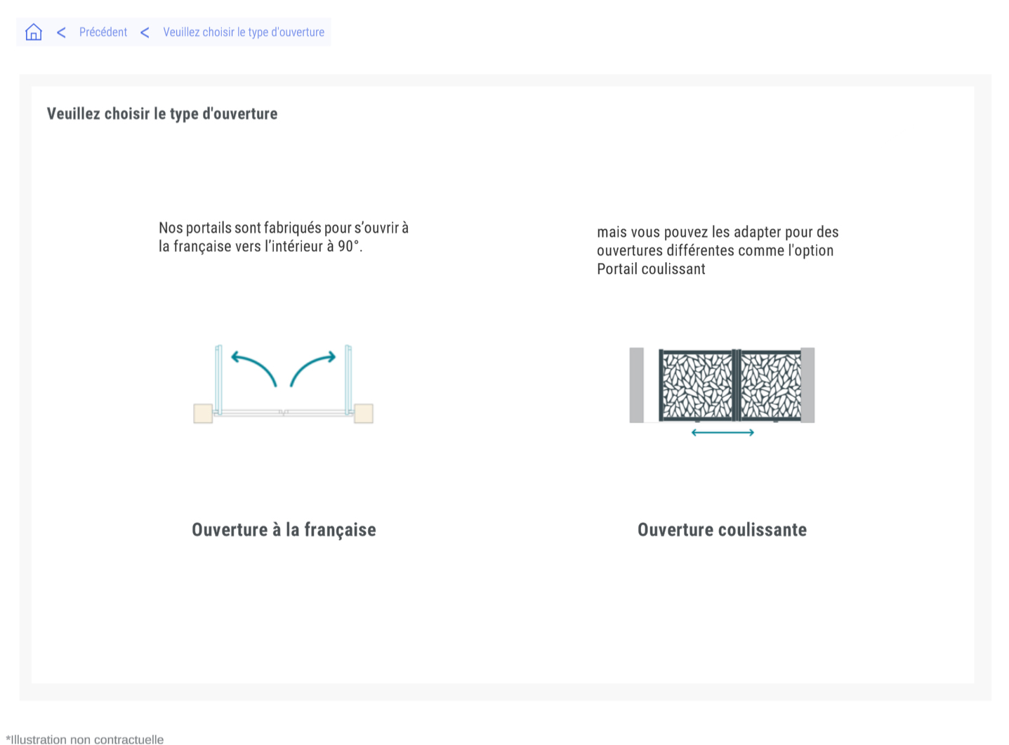 Nous avons développé un configurateur pour que les clients de Clodelys puissent configurer simplement le portail de leur rêve.