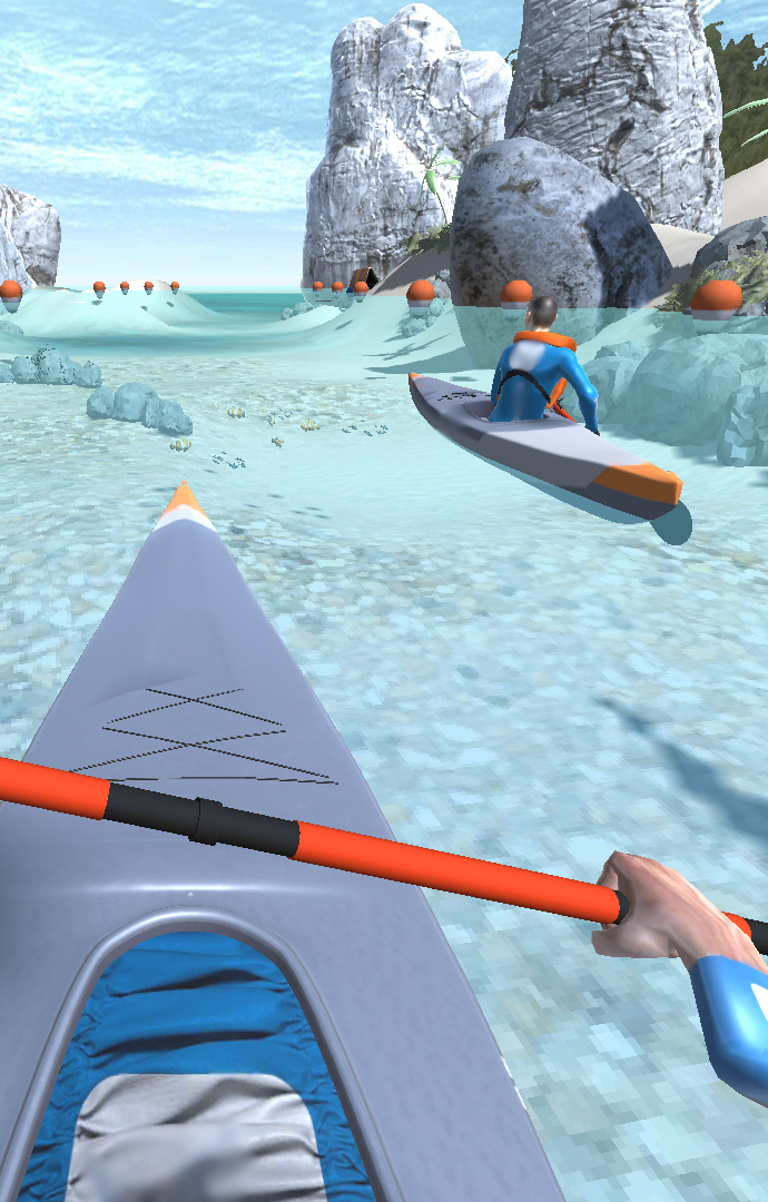 Pour fonctionner sur le casque Oculus Quest, qui utilise des composants de smartphone, il fallait s’assurer d’avoir une forte optimisation sur le shader de l’eau. Nous avons aussi utilisé un buste pour ajouter le réalisme et avons modélisé un des kayaks de la marque ITIWIT.