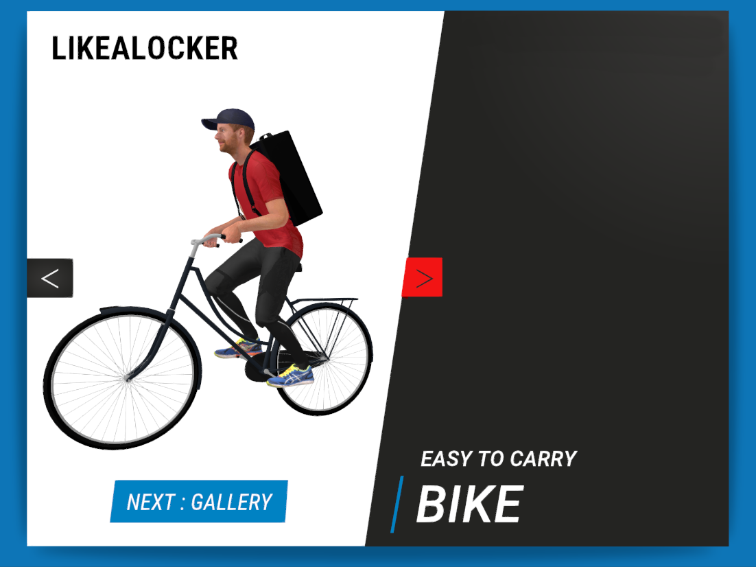 Nos animateurs 3D ont animé les personnages dans différentes situations pour indiquer comment porter le sac. L’avantage des animations et qu’elles peuvent être vues à 360°. Ici le client peut tourner avec son doigt autour de l’animation, zoomer / dézoomer etc.