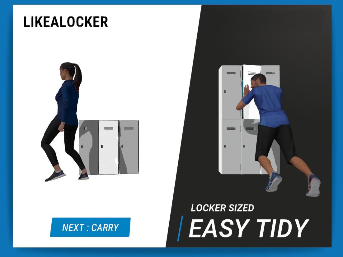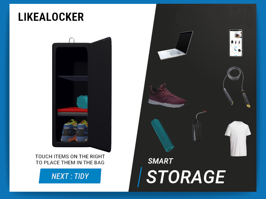 Le but était de mettre en avant la force du sac : son format qui lui permet de se ranger facilement dans un casier (locker) et ses compartiments ingénieux pour ranger de façon ordonnée ses affaires de sport.